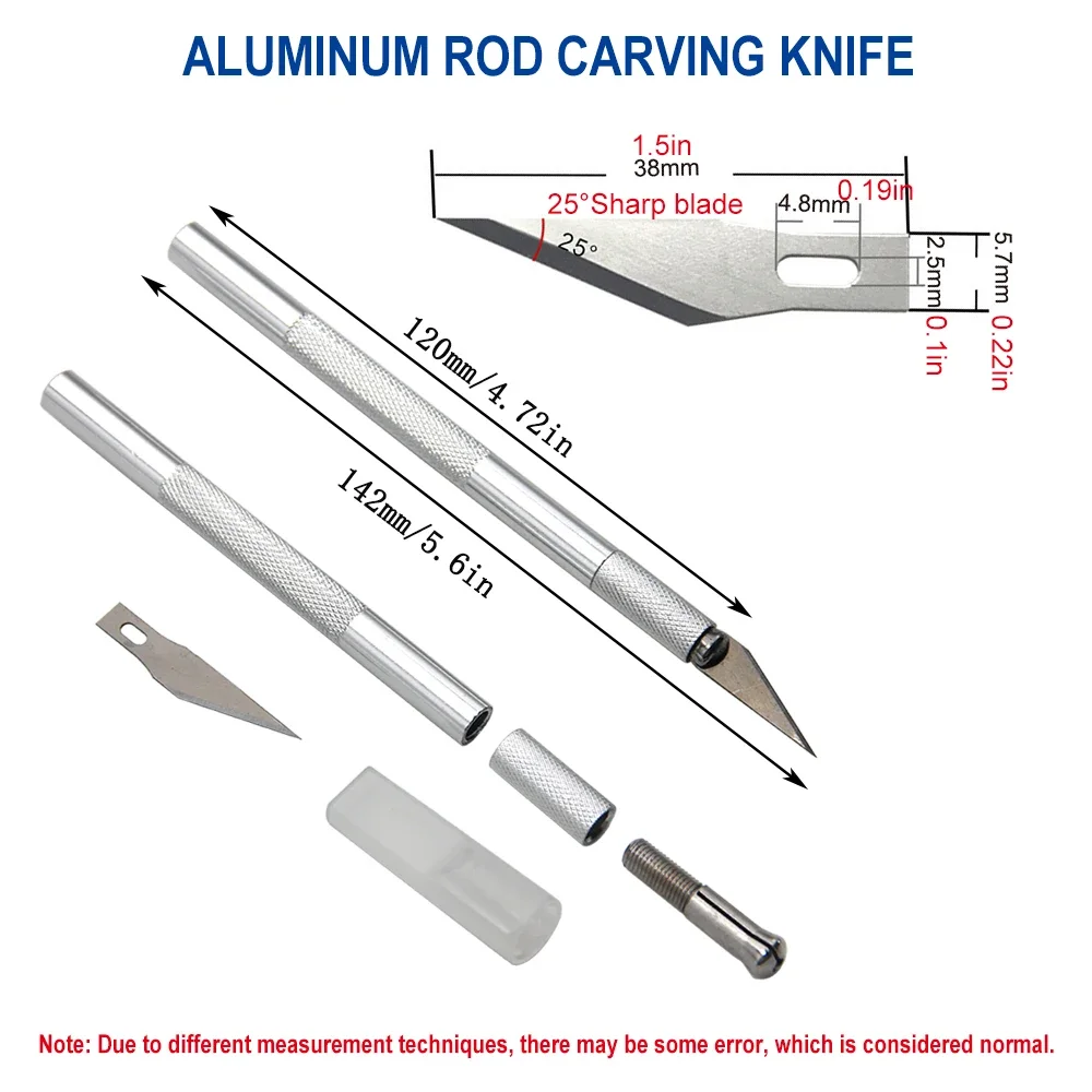 The Aluminum Carving Craft Knife is a versatile tool designed for DIY projects, model making, and creative arts. Made from durable aluminum alloy, it is lightweight yet strong, offering precision and control during detailed work. Ideal for hand carving, paper cutting, wood sculpting, and miniature modeling, it provides accurate and smooth cuts. Its ergonomic handle ensures a comfortable grip for extended use, reducing hand fatigue. Perfect for hobbyists, artists, and craft enthusiasts, it supports a wide range of creative applications. The knife is compatible with various blades, allowing for customization depending on the project requirements. Its compact design makes it portable and easy to store in a craft kit or toolbox. Durable construction ensures long-lasting performance, even with frequent use. Ideal for precision tasks, including paper art, wood carvings, model assembly, and DIY decorations. The sharp blade allows clean cuts, improving workflow and enhancing artistic results. Lightweight and well-balanced, it ensures safety and stability while cutting. Suitable for both beginners and professionals, it provides versatility for multiple creative techniques. The Aluminum Carving Craft Knife is an essential accessory for any art or craft project, enabling detailed and precise work. Enhance your DIY and model-making projects with this reliable, high-quality craft knife.